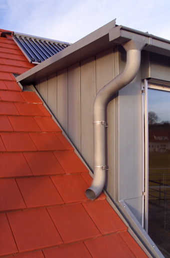 Passend zur Dachrinne können wir Ihnen Regenablaufrohre anbieten incl. Regenwasserklappe, damit Sie Ihren Garten auch gießen können.